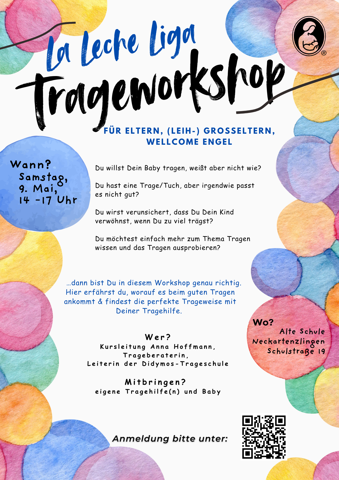 Einen La Leche Liga Trageworkshop am Samstag, 9.05.2026 14-17 Uhr, mehr Infos